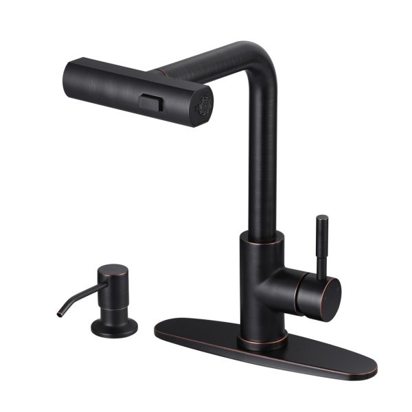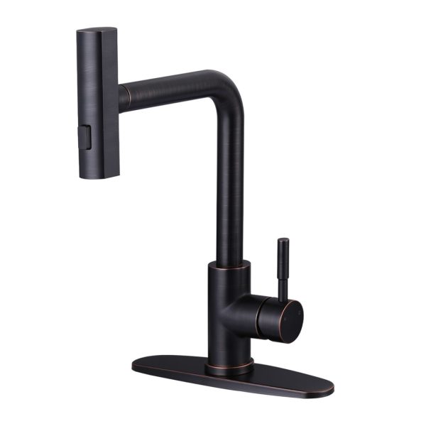 Single Handle Pull Out Sprayer Kitchen Faucet with Deckplate Included in Oil Rubbed Bronze