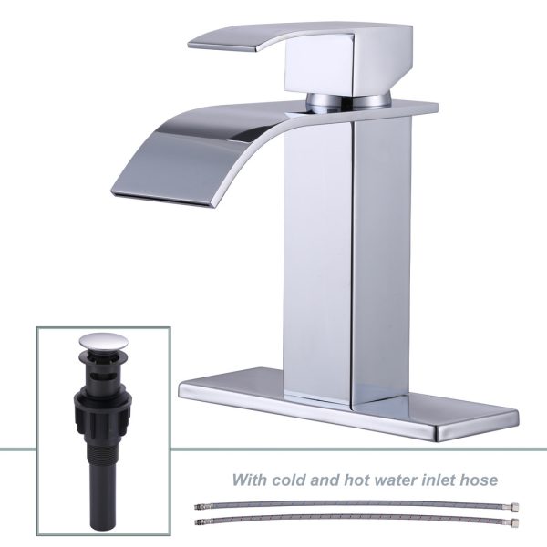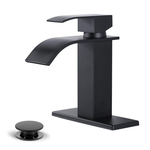 ALEASHA Bathroom Faucet Waterfall Spout Faucet for Bathroom Sink Single Handle Mixer Tap Lavatory Vanity Sink Faucet Dark Grey