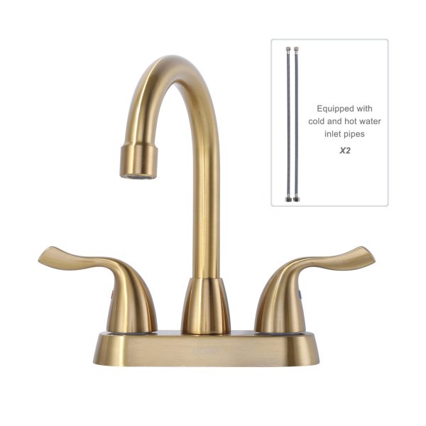 $47.99ALEASHA 4 inch Centerset 2 Handle Centerset Lavatory Faucet Brushed Gold Bathroom Sink With Faucet