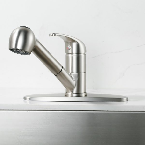 Single Handle Pull Out Sprayer Kitchen Faucet Deckplate Included in Brushed Nickel