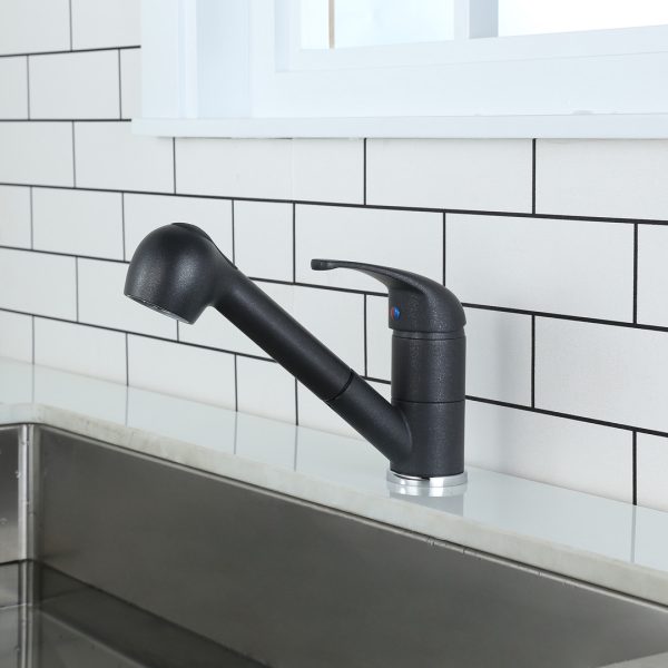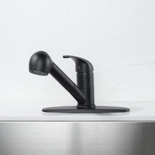 Single Handle Pull Out Sprayer Kitchen Faucet with Deckplate in Matte Black
