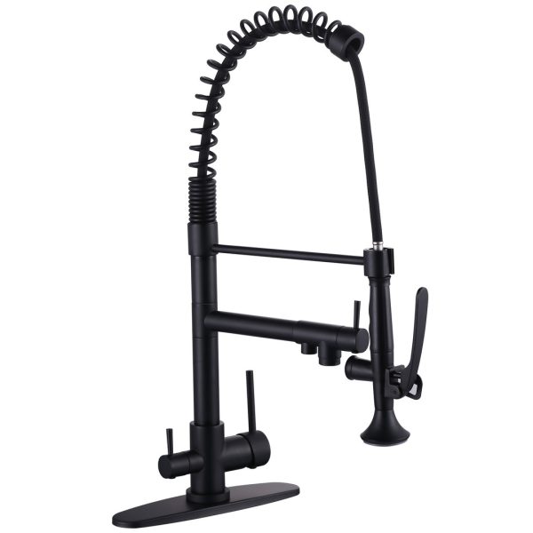 16.7 inch 2 In 1 Stainless Steel Pull Down Sprayer Kitchen Faucet with Swivel Drinking Water Faucet in Matte Black