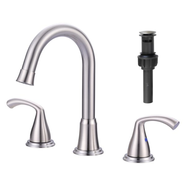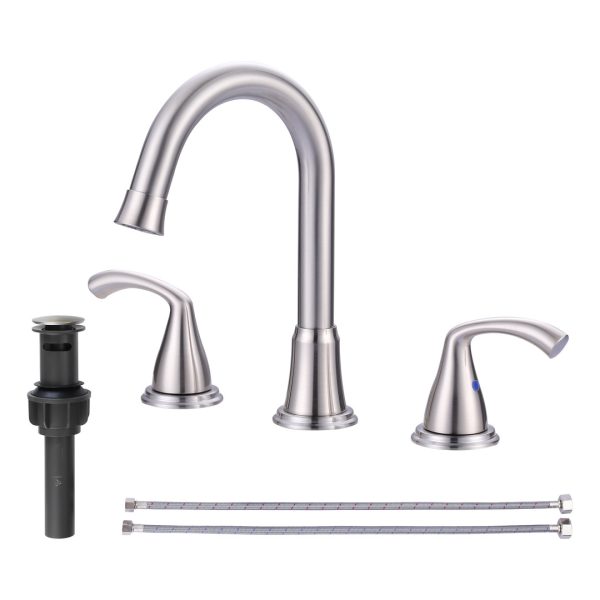 8 in. Widespread 3 Holes Double Handle Bathroom Faucet with Pop Up Drain and Supply Lines in Brushed Nickel