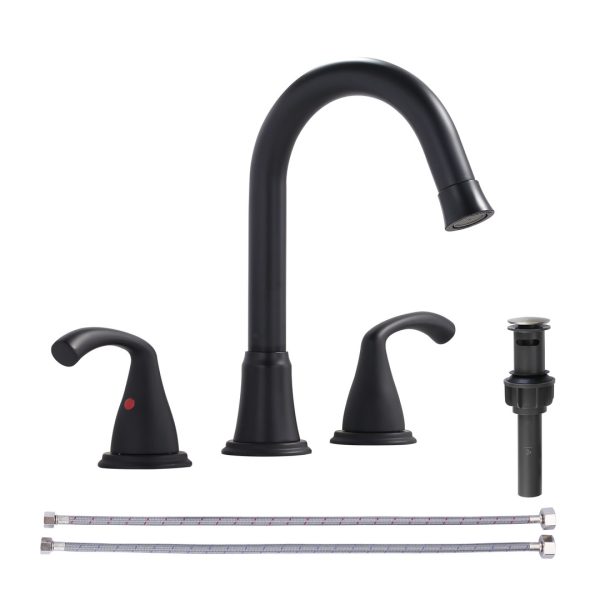 8 in. Widespread 3 Holes Double Handle Bathroom Faucet with Pop Up Drain and Supply Lines in Matte Black