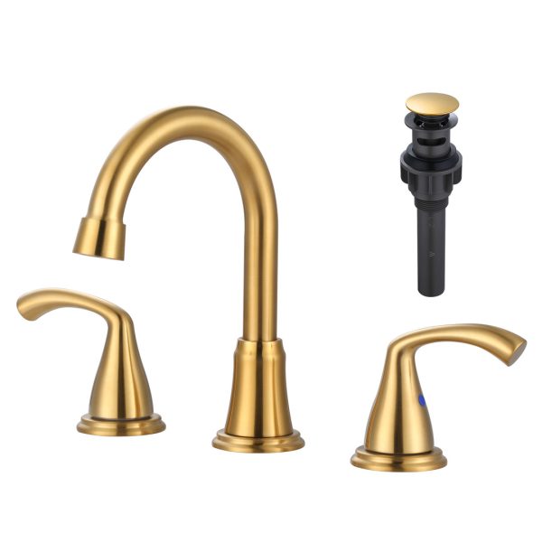 ALEASHA Gold Bathroom Sink Faucet, Widespread Bathroom Faucet 3 Hole with Pop Up Drain for Vanity RV Basin Lavatory Restroom Fixture