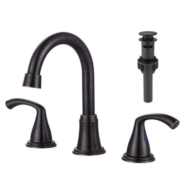 8 in. Widespread 3 Holes Double Handle Bathroom Faucet with Pop Up Drain and Supply Lines in Oil Rubbed Bronze
