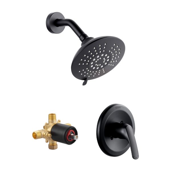 ALEASH Tub Shower Faucet Set, Modern Shower Trim Kit with 6-Inch Shower Rainfall Head, Single-Handle Bathroom Shower Faucet Set with Valve, Black