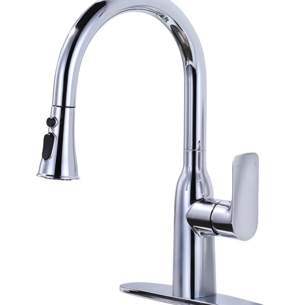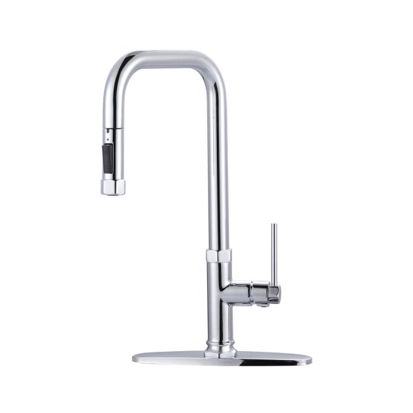 Single Handle Pull Out Sprayer Kitchen Faucet with Deckplate in Chrome