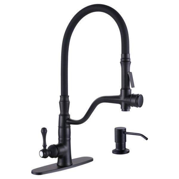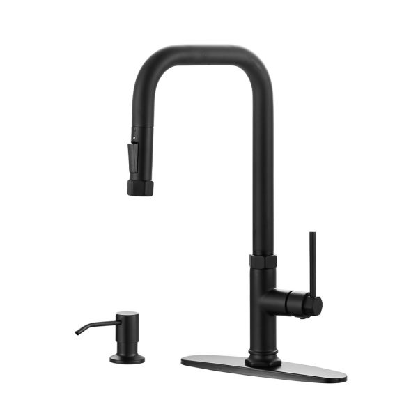Single Handle Pull Out Sprayer Kitchen Faucet Deckplate Included with Soap Dispenser in Matte Black