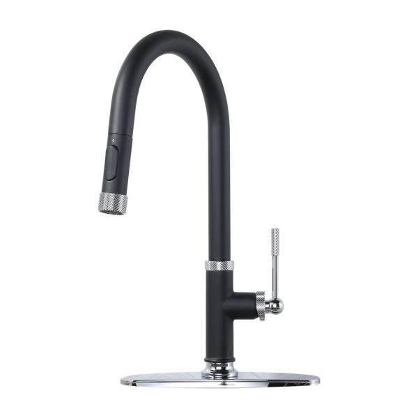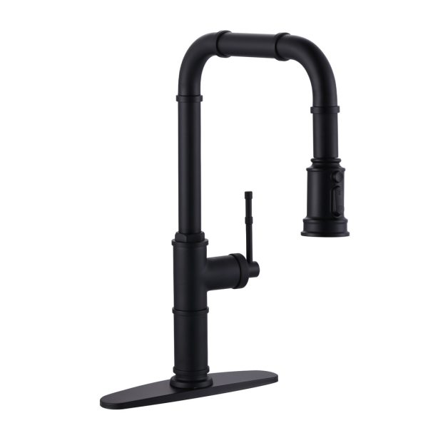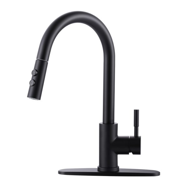 Single Handle Pull Out Sprayer Kitchen Faucet with Deckplate in Matte Black