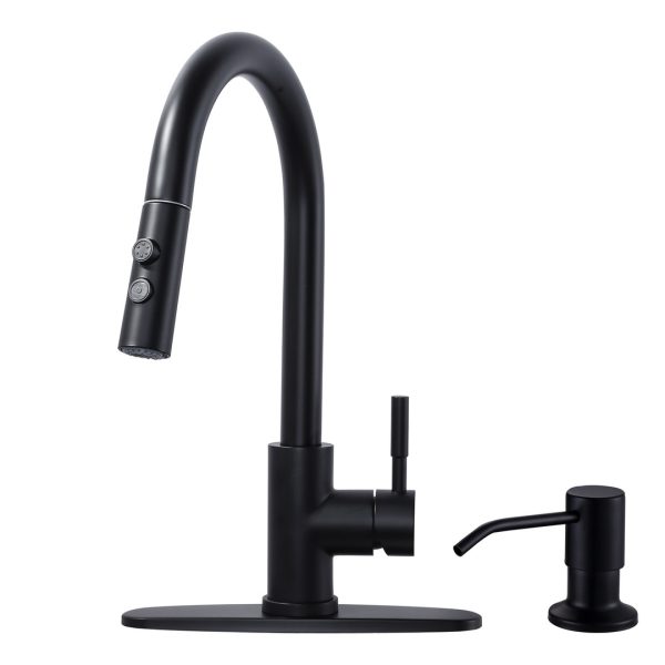3 Modes Single Handle Pull Down Sprayer Kitchen Faucet with Soap Dispenser in Matte Black