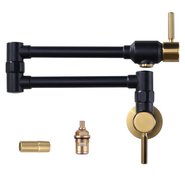 Wall Mounted Brass Pot Filler with Double-Handle Folding Kitchen Faucet in Matte Black