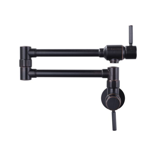 Wall Mounted Brass Pot Filler with Double-Handle Folding Kitchen Faucet in Oil Rubbed Bronze