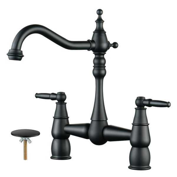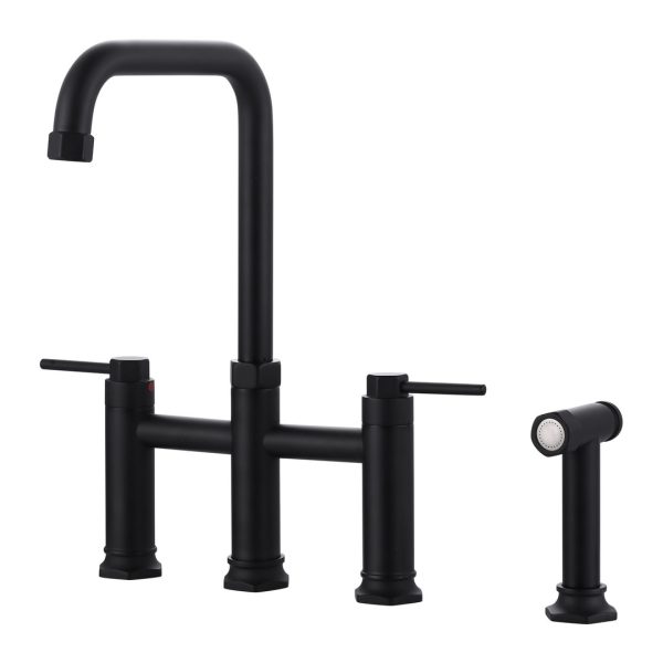 Double Handle Bridge Kitchen Faucet with Side Sprayer in Matte Black