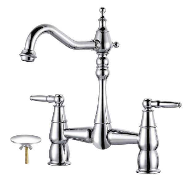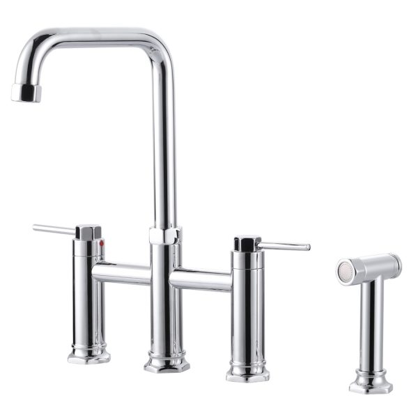 Double Handle Bridge Kitchen Faucet with Side Sprayer in Polished Chrome