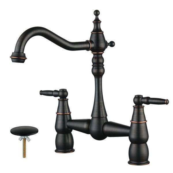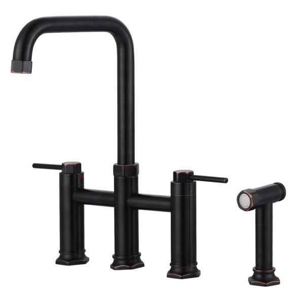 Double Handle Bridge Kitchen Faucet with Side Sprayer in Oil Rubbed Bronze