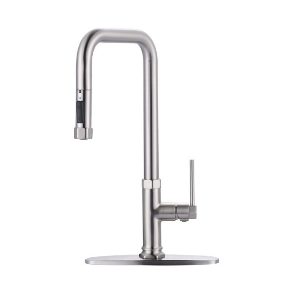 Single Handle Pull Out Sprayer Kitchen Faucet Deckplate Included in Brushed Nickel
