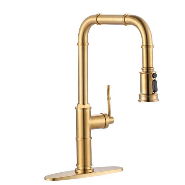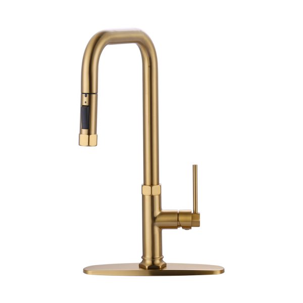 Single Handle Pull Out Sprayer Kitchen Faucet Deckplate Included in Brushed Gold