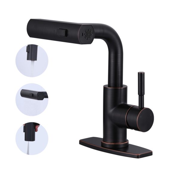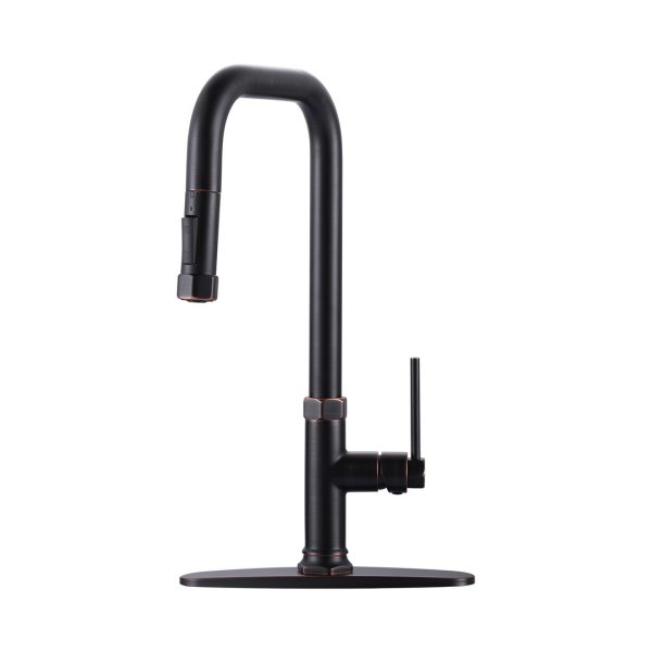 Single Handle Pull Out Sprayer Kitchen Faucet with Deckplate Included in Oil Rubbed Bronze