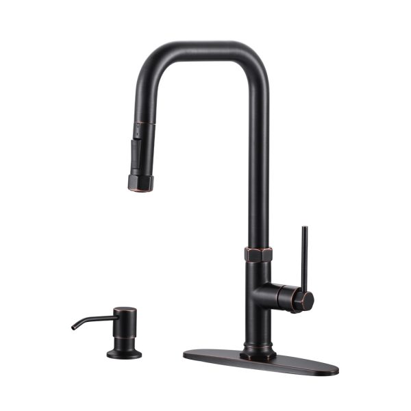 Single-Handle Pull Down Sprayer Kitchen Faucet with Pull Out Spray Wand and Soap Dispenser in Oil Rubbed Bronze