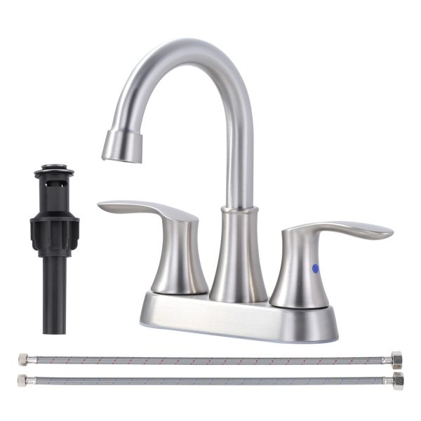 4 in. Centerset Double Handle Gooseneck High Arc Bathroom Faucet in Brushed Nickel