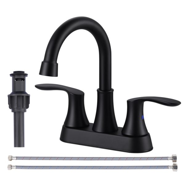 4 in. Centerset Double Handle Gooseneck High Arc Bathroom Faucet in Matte Black