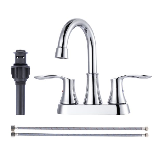 4 in. Centerset Double Handle Gooseneck High Arc Bathroom Faucet in Chrome