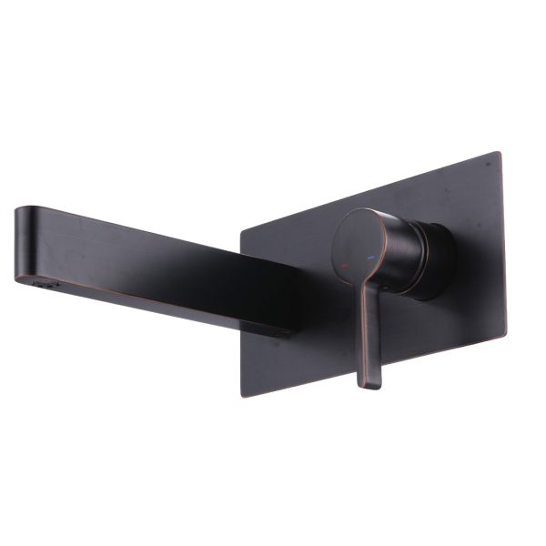 Modern Wall-Mounted Square Double-Handle Bathroom Faucet with Waterfall Spout in Oil Rubbed Bronze