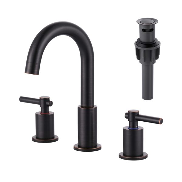 8 in. Widespread 3 Holes Double Handle Bathroom Faucet with Pop Up Drain and Supply Lines in Oil Rubbed Bronze