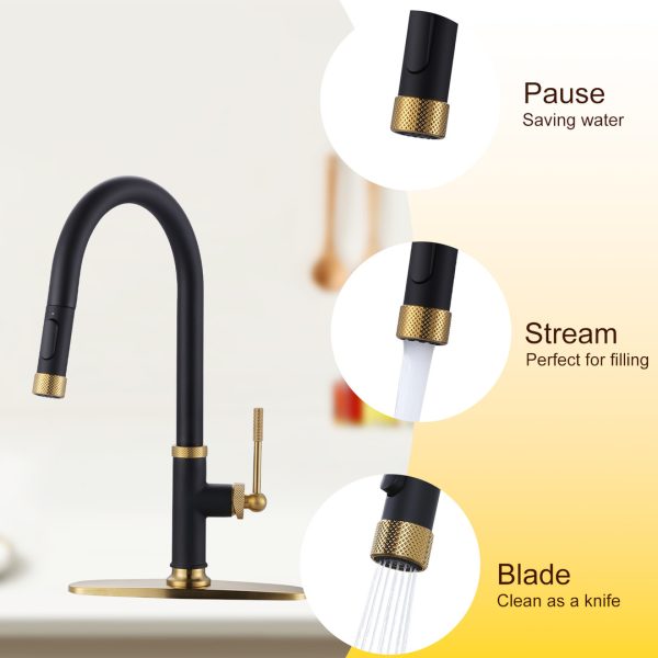 Single Handle Pull Down Sprayer Kitchen Faucet with Pull Out Spray Wand in Gold and Black
