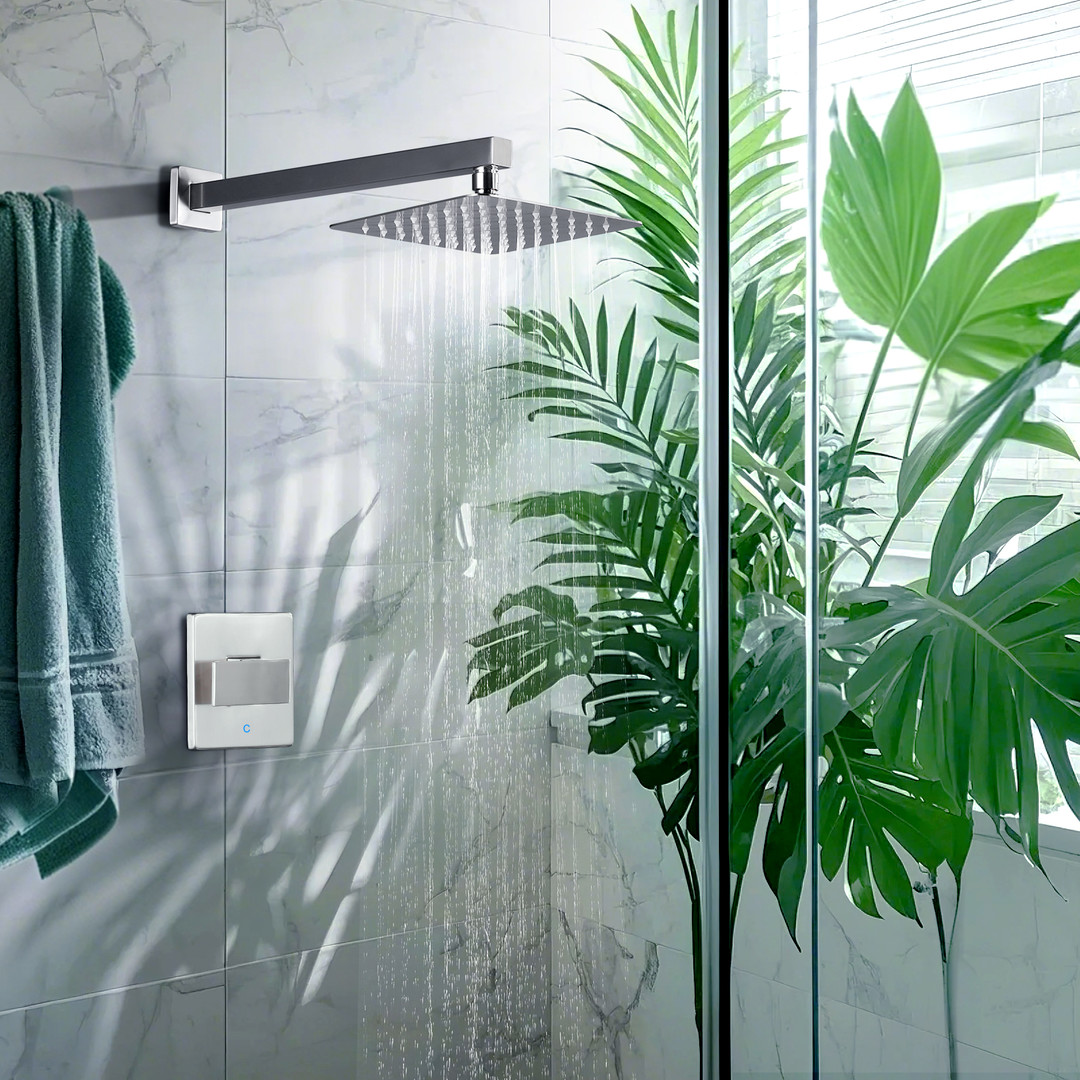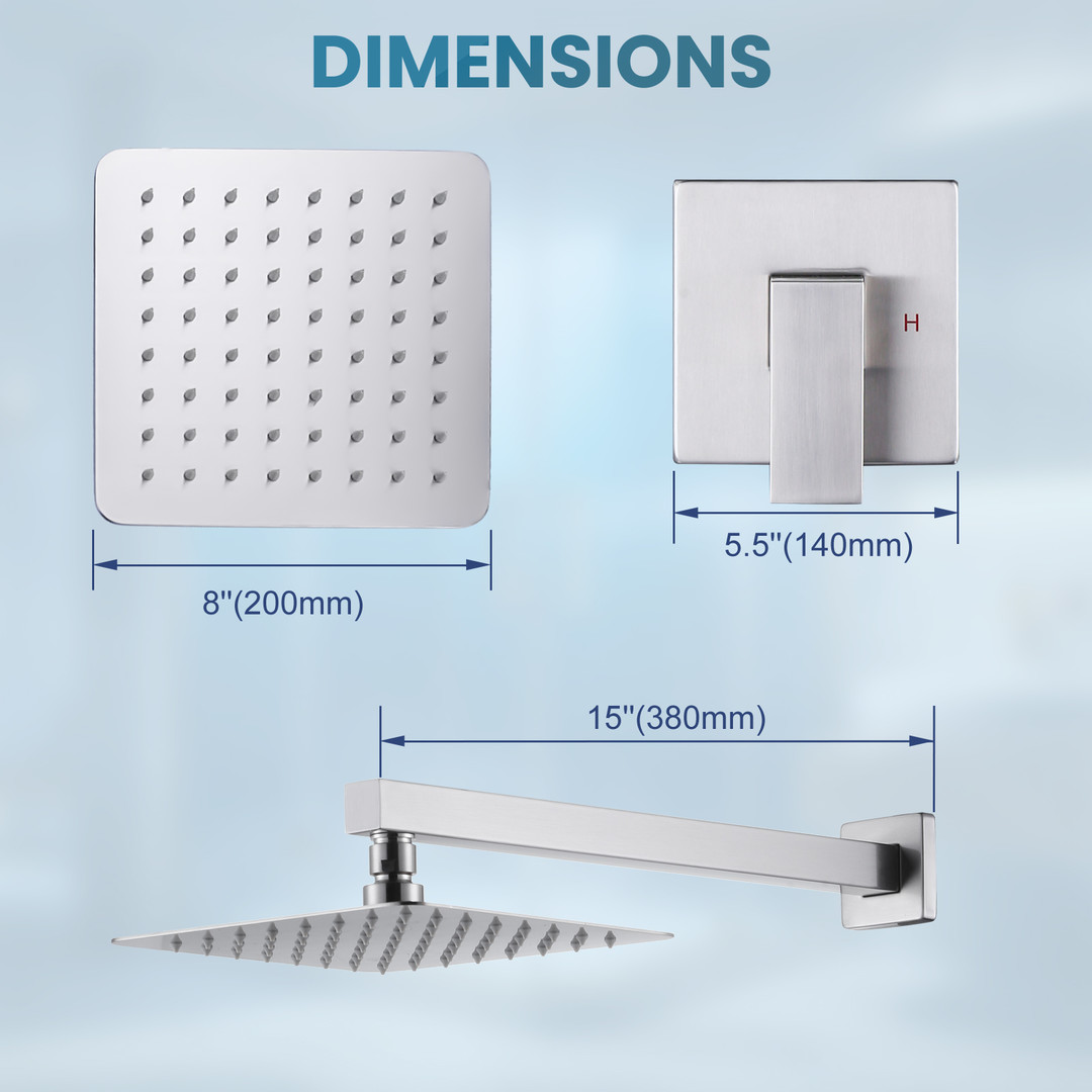 The 8 in. square wall-mounted rain shower utilizes modern spray technology to ensure a uniform and smooth water flow, creating a gentle showering experience. The 360?? rotatable rain shower head allows for flexible orientation adjustment. The clean lines and geometric shapes of the square design blend perfectly with modern decor, giving the bathroom a fashionable and sophisticated look.
