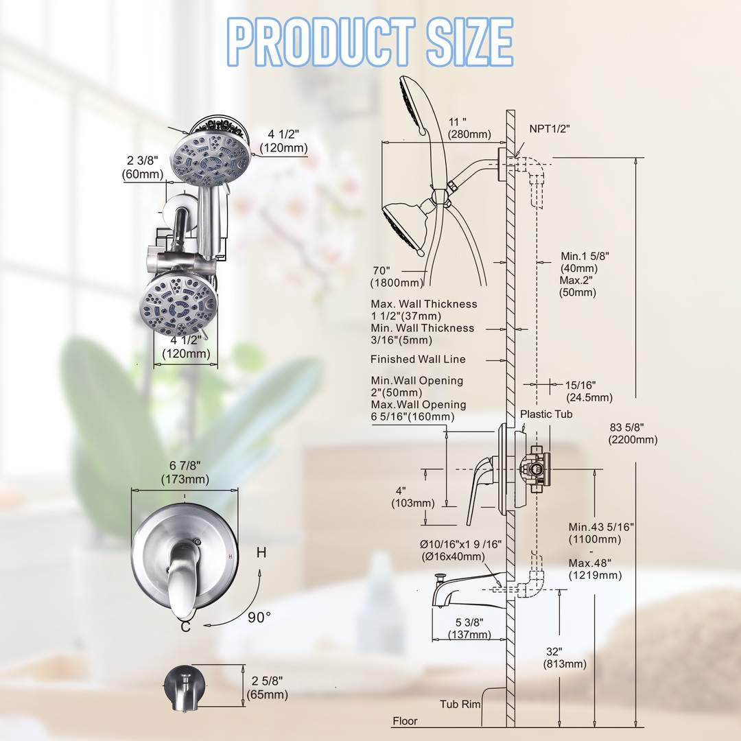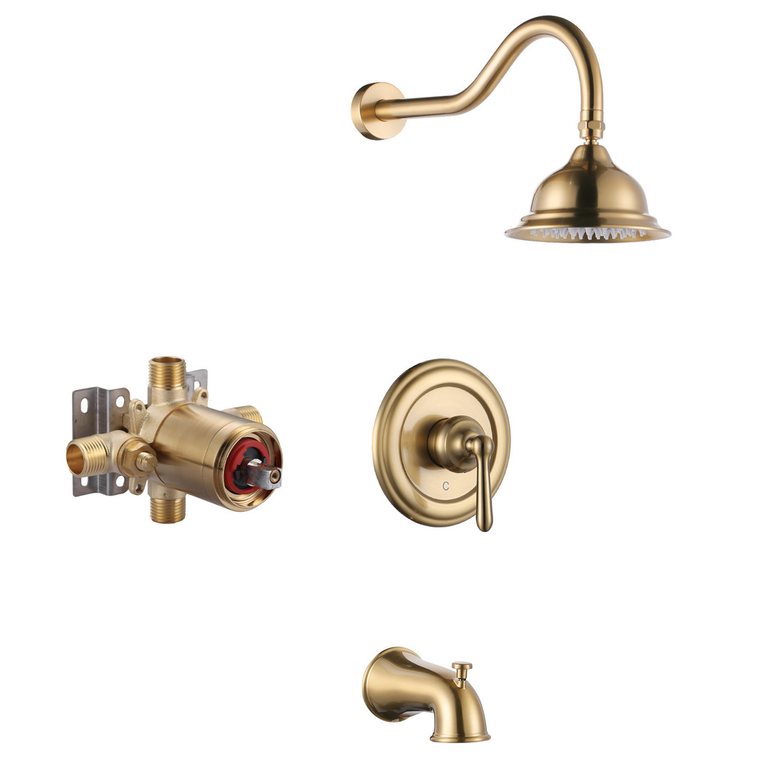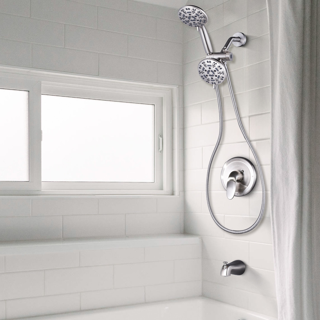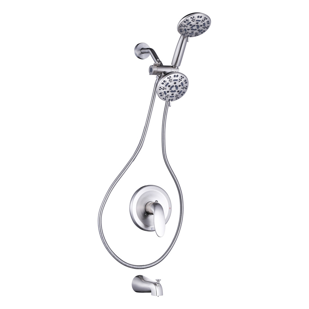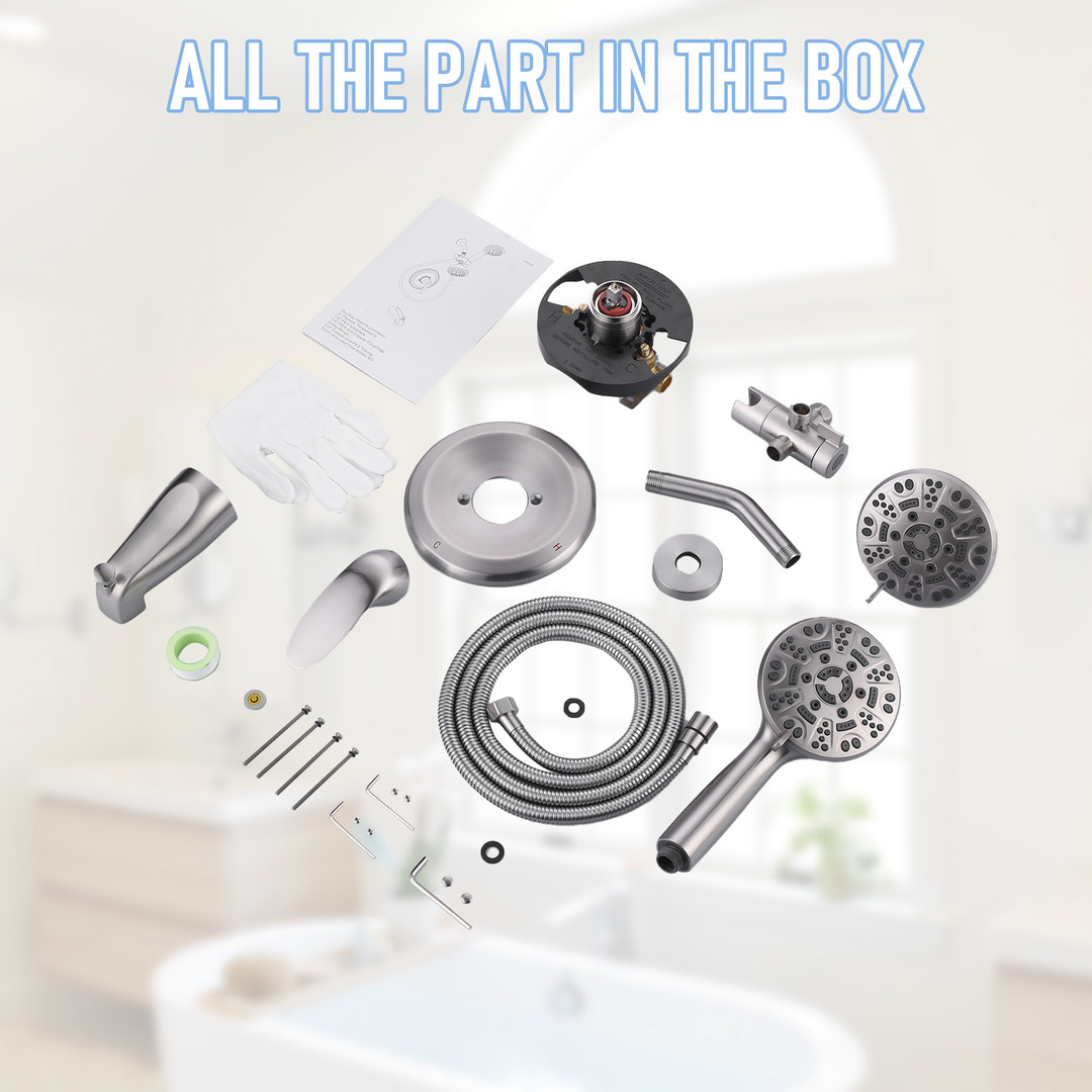 Elevate your bathing experience with the ALEASHA shower combo. This comprehensive kit includes a fixed showerhead, a handheld showerhead, and a bathtub spout, all equipped with a valve to meet nearly all your showering needs. Whether you’re showering or soaking in the tub, this combo has you covered. Its rich features and stylish appearance make it a perfect fit for any modern bathroom decor.