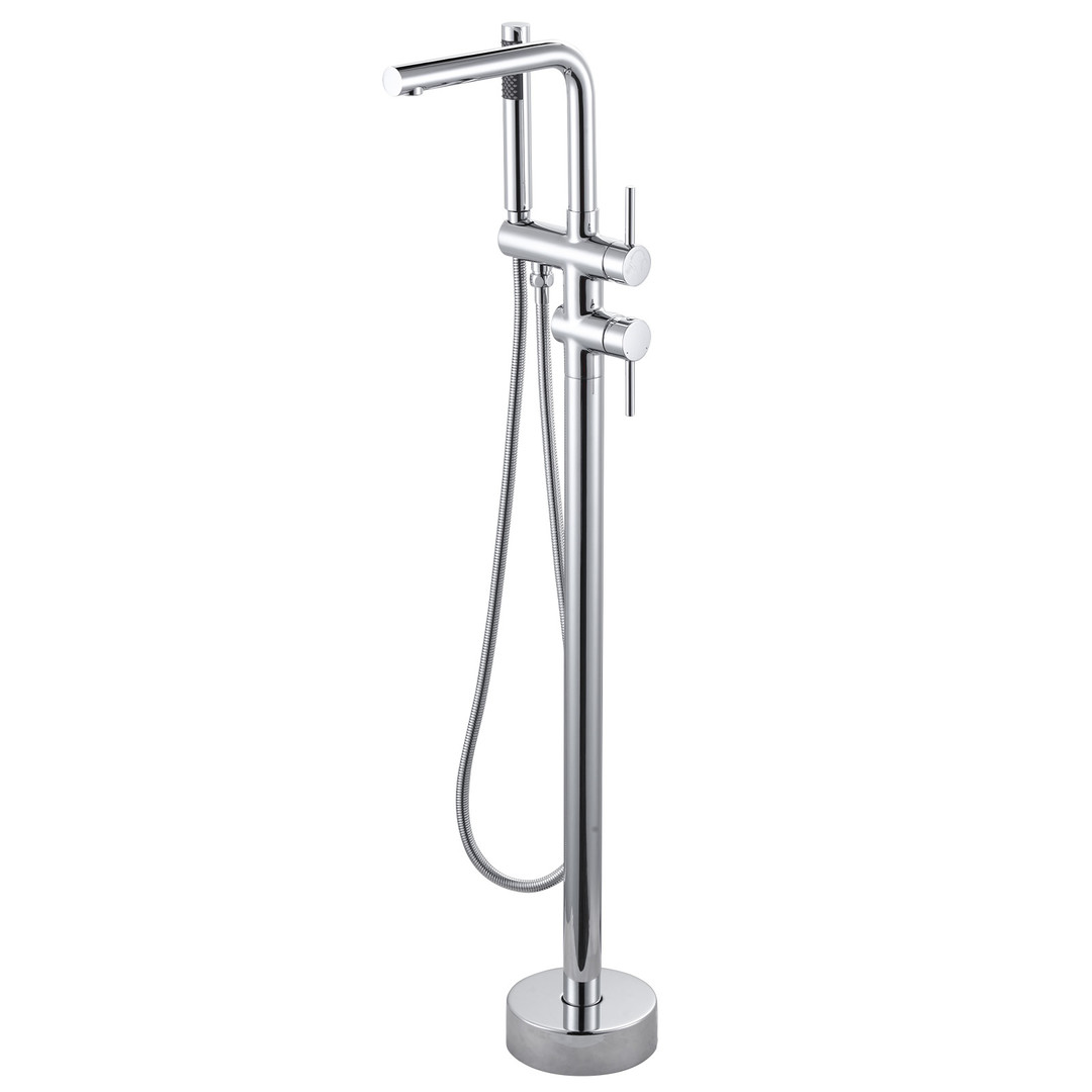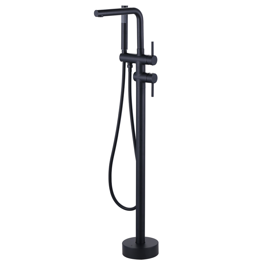 ALEASHA Freestanding Bathtub Faucet combines minimalist lines with modern aesthetic design, using solid brass material for a sleek and elegant appearance that complements various styles of freestanding bathtubs. The 360?? rotating bathtub spout allows for direct filling of the bathtub. The handheld showerhead provides an enhanced showering experience and aids in cleaning the bathtub. With precision ceramic valve cores and built-in aerators, enjoy smooth, leak-free operation and splash-free water flow.