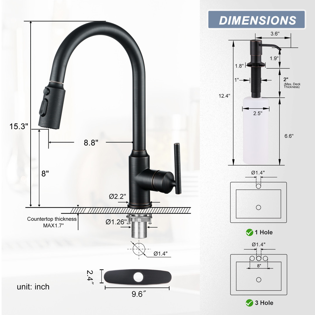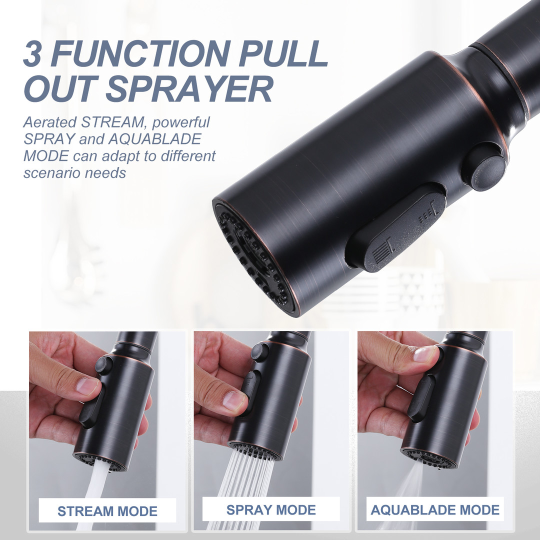 Our ALEASHA faucet equipped with a soap dispenser boasts three water modes, meeting your assorted needs. Whether it’s cleaning the sink or the kitchen countertop, these modes spread the water evenly, ensuring a thorough clean.With the built-in soap dispenser, you’ll not have to fumble around for a separate soap bottle again. It’s all right there, ready to dispense soap with a simple press.It truly is a combination of form and function, and it’s sure to enhance your kitchen experience.