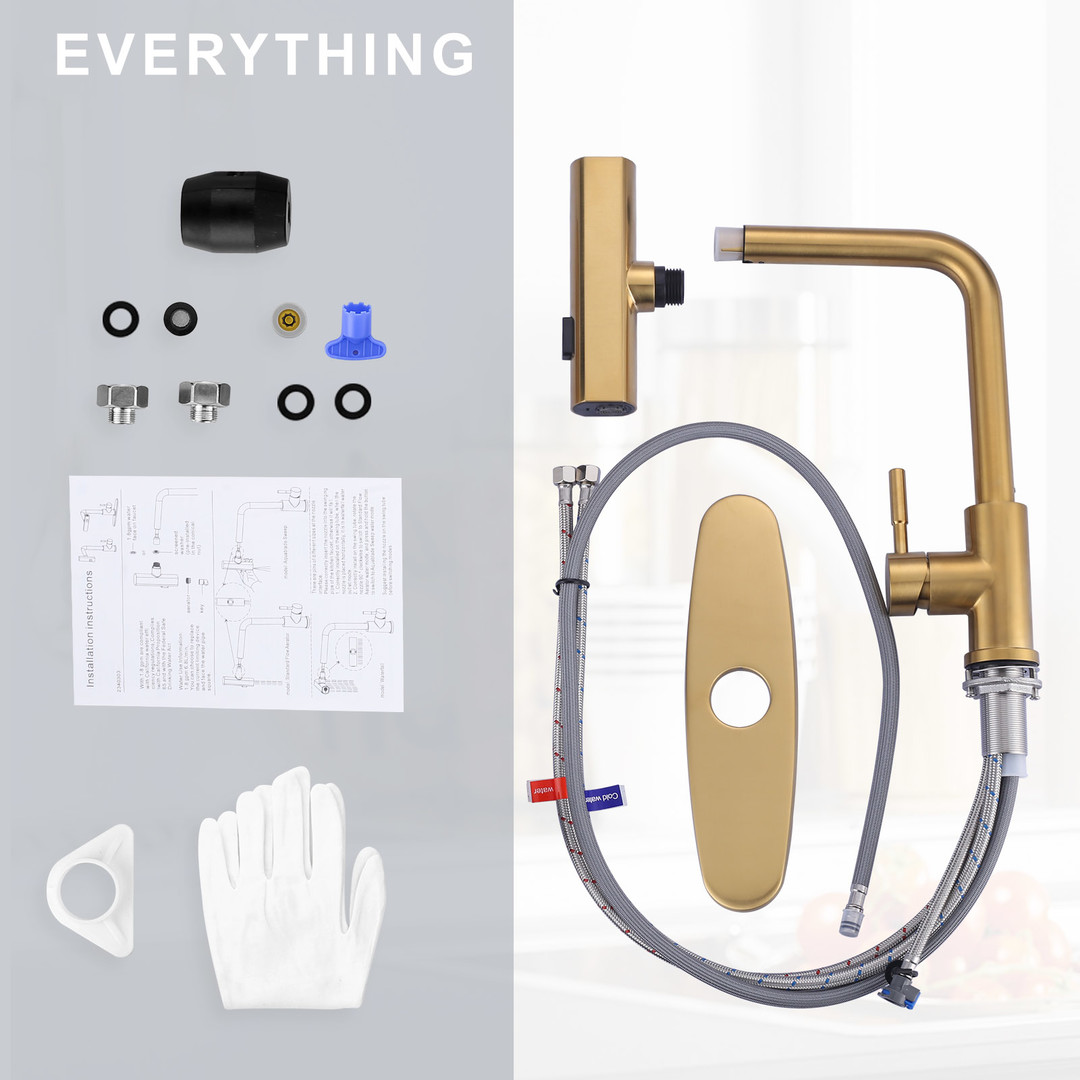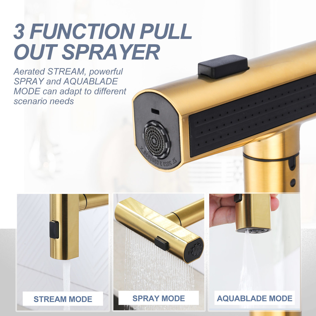 6 reviews for Single Handle Stainless Steel 3 Functions Waterfall Pull Down Sprayer Kitchen Faucet in Brushed Gold