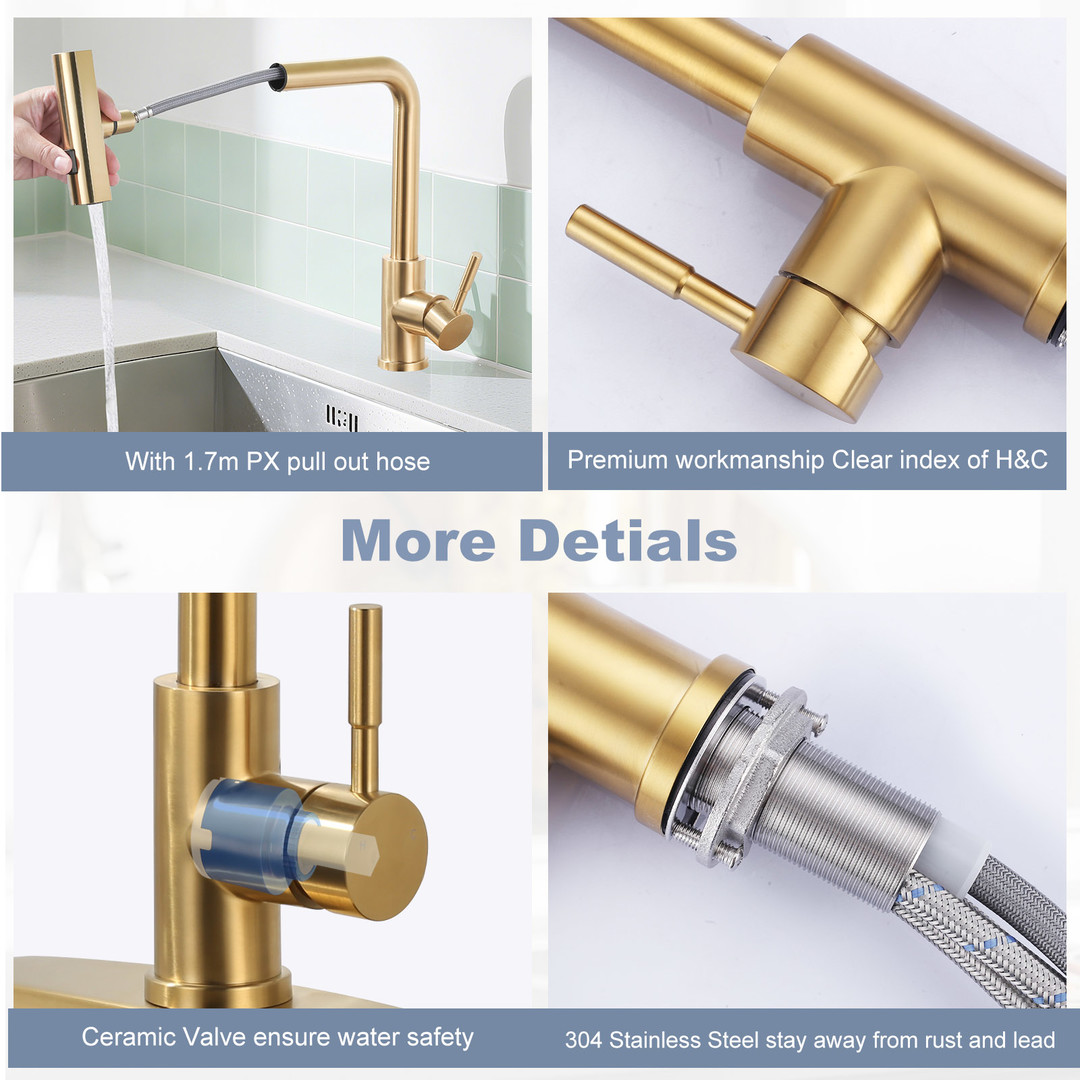 • Premium material: the kitchen faucet is made of high-quality 304 stainless steel, resistant to corrosion and wear, ensuring long-term use without rusting or fading
