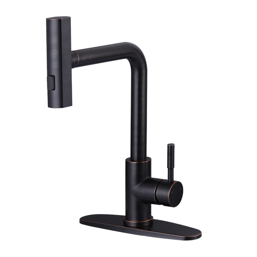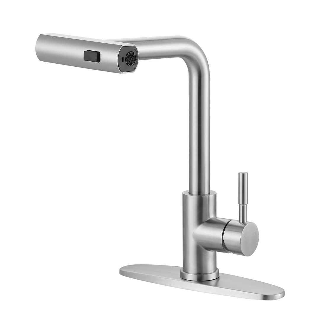 The ALEASHA modern pull-down kitchen faucet is crafted from 304 stainless steel to elevate your kitchen. Its high-arc gooseneck design with a 7-layer finish ensures both durability and a sleek look. It features 3 distinct water modes: Waterfall Flow, Stream, and Sweep. The pull-down spout reaches every corner of your sink, while the corrosion-resistant stainless steel surface keeps it shining for years.