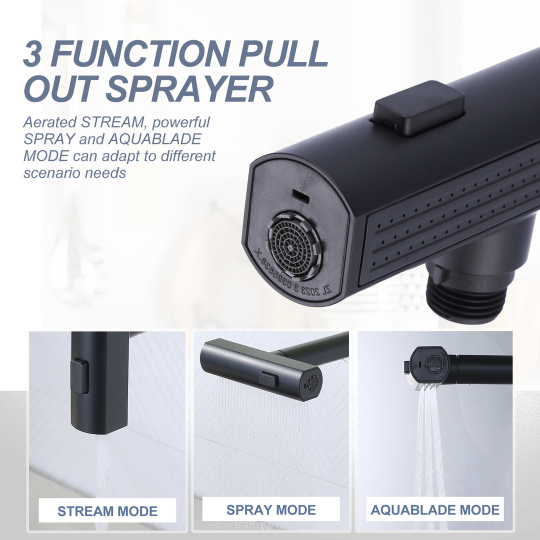 Be the first to review “Single Handle Stainless Steel 3 Functions Waterfall Pull Down Sprayer Kitchen Faucet in Matte Black”