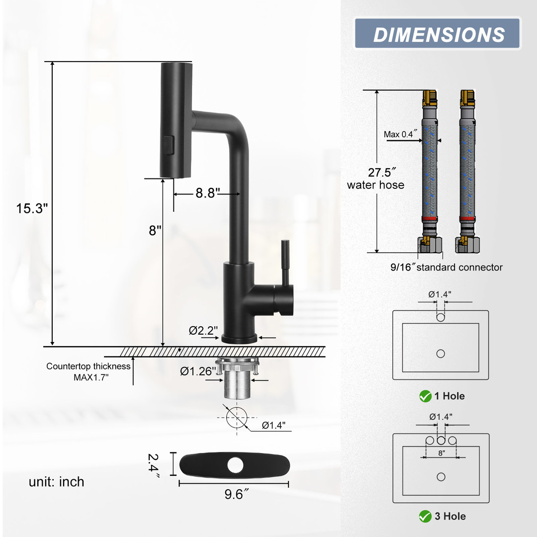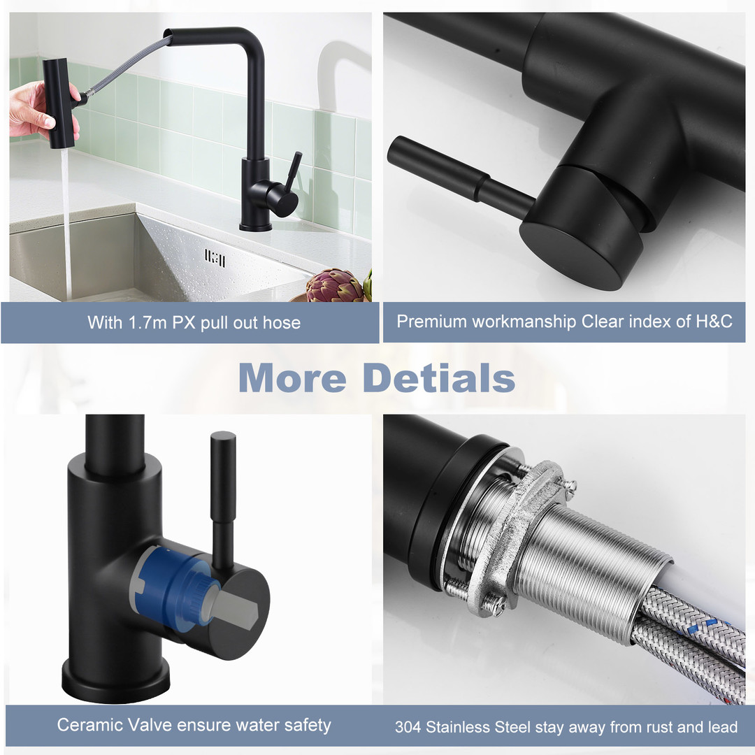 • Premium material: the kitchen faucet is made of high-quality 304 stainless steel, resistant to corrosion and wear, ensuring long-term use without rusting or fading