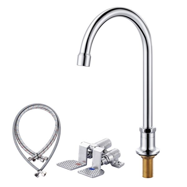 $74.99Dual Foot Pedal Faucet Double Handle Deck Mounted Bathroom Faucet with Pedal Valve and Supply Lines in Polished Chrome