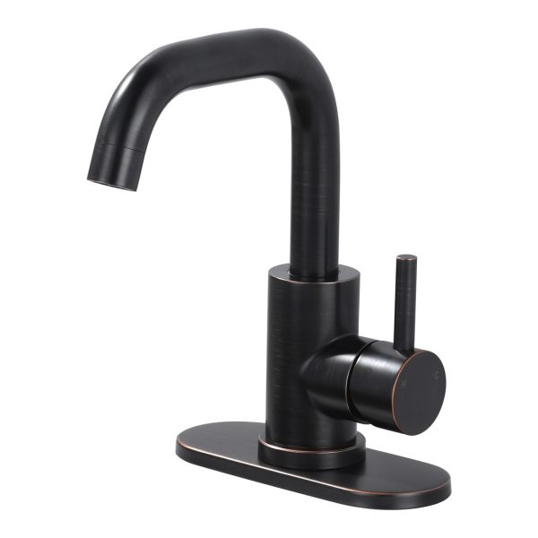 ALEASHA Modern Single Handle Oil Rubbed Bronze Bathroom Sink Faucet with Drain for 1 Or 3 Hole