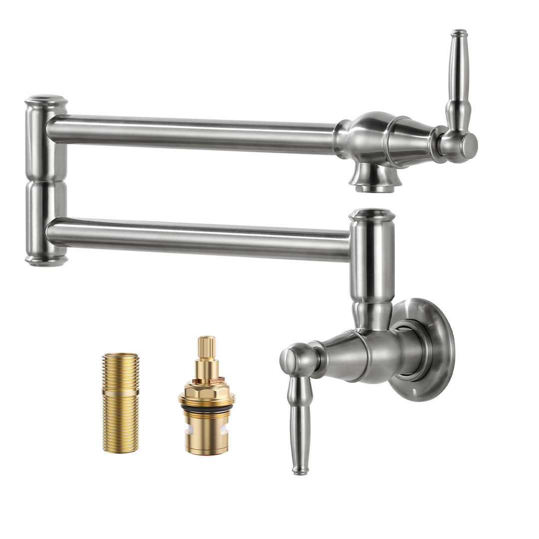This pot filler faucet, designed specifically to save countertop space, offers a unique folding mechanism that makes it the ideal choice for those pursuing a minimalist and tidy lifestyle. With a simple push, the faucet folds away neatly, keeping your countertop clean and enhancing your kitchen experience. Crafted from high-quality solid brass, this faucet is corrosion-resistant and durable, ensuring it remains as bright and shiny as new year after year, adding lasting brilliance to your kitchen. Additionally, the built-in precision aerator guarantees a steady, smooth stream without splashing, conserving water while keeping your kitchen dry. Equipped with a standard 1/2 in. NPT connector, it ensures quick and easy installation. Its modern design with vintage undertones seamlessly integrates into any decor style-whether contemporary minimalist or classic retro-making it a standout feature in your home.