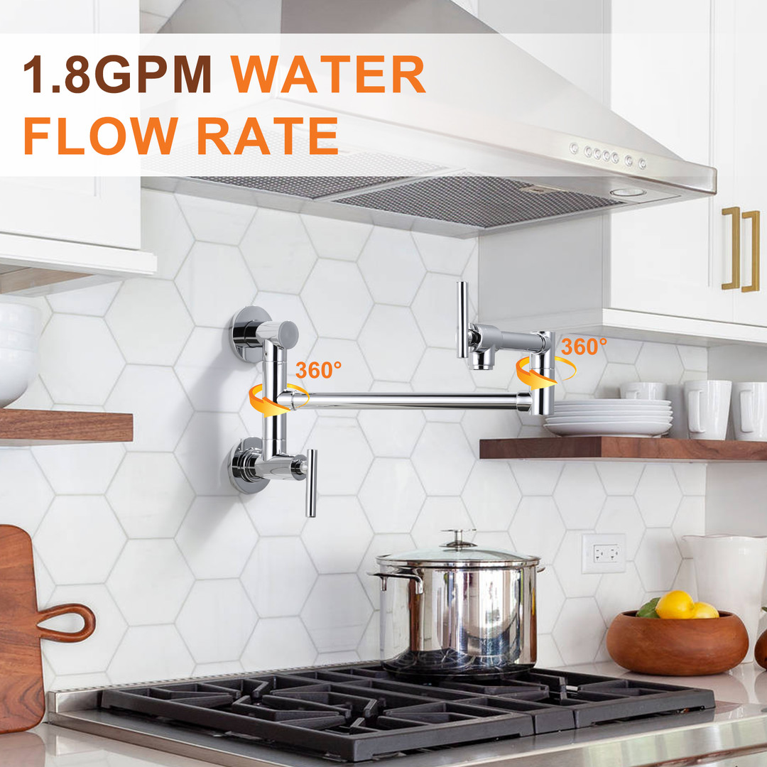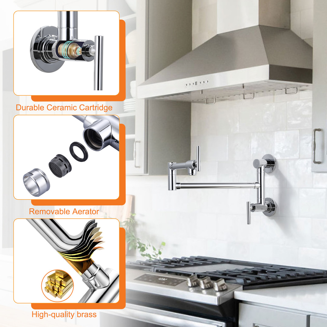 This cold water supply folding faucet is unique, with 360?? free-swivel dual joints for flexibility and versatility to meet your every need during cooking. With a maximum length of 21.3 in. it can fill containers on the stovetop with water. In addition, its folding design is thoughtful and practical, and it can be easily retracted when not in use, which not only saves space in the kitchen, but also makes the overall layout of the kitchen look more simple and beautiful. Both in terms of functionality and aesthetics, this faucet is the ideal choice for your kitchen.