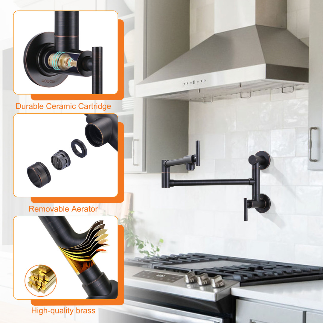 This cold water supply folding faucet is unique, with 360 free-swivel dual joints for flexibility and versatility to meet your every need during cooking. With a maximum length of 21.3 inches, it can fill containers on the stovetop with water. In addition, its folding design is thoughtful and practical, and it can be easily retracted when not in use, which not only saves space in the kitchen, but also makes the overall layout of the kitchen look more simple and beautiful. Both in terms of functionality and aesthetics, this faucet is the ideal choice for your kitchen.