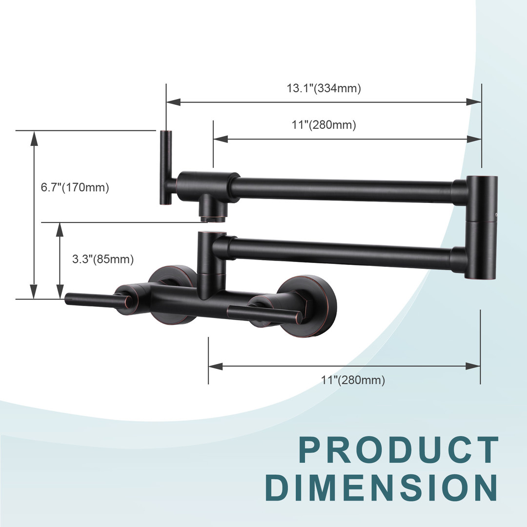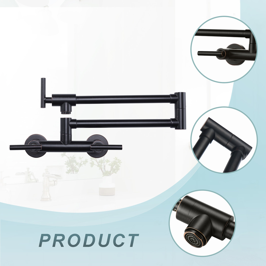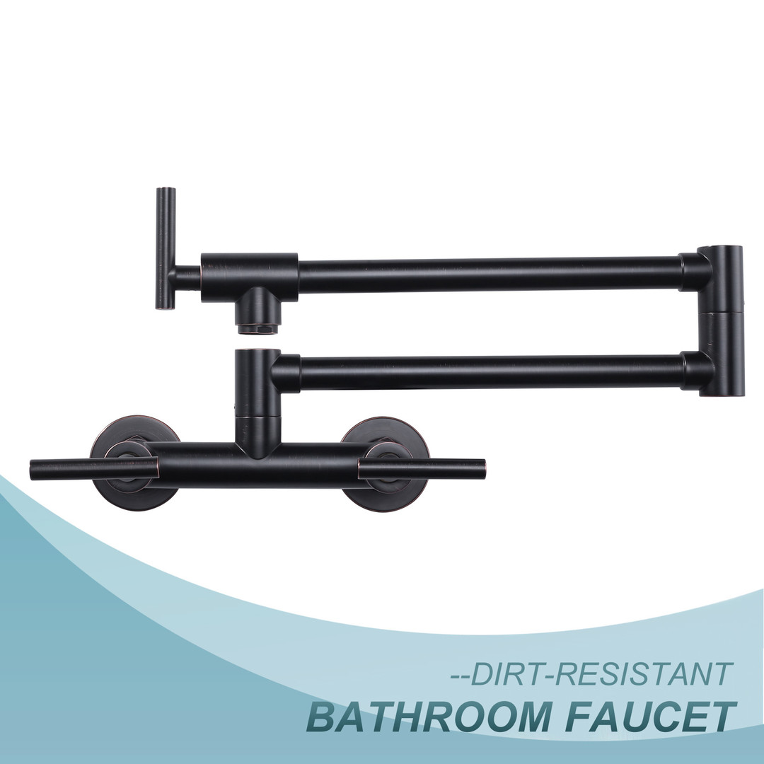 Designed with dual handles, it can provide cold and hot water at the same time. The wall-mounted design makes it easy to fill the pot directly without having to hold the pot and walk around, saving time and energy. This stovetop faucet is also easy to clean and maintain, it is not easy to get grease and water stains, just simply wipe it to keep it shining like new.