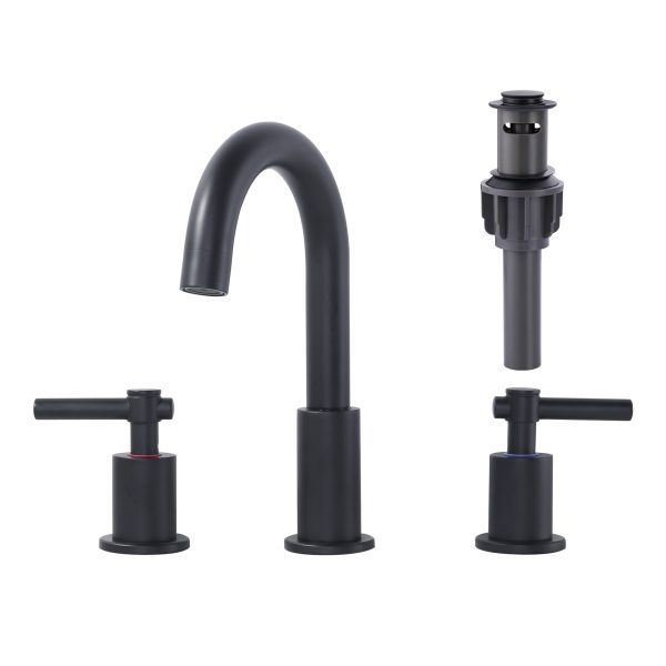 8 in. Widespread 3 Holes Double Handle Bathroom Faucet with Pop Up Drain and Supply Lines in Matte Black