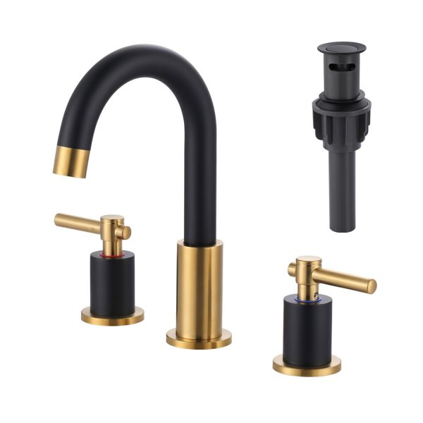 8 in. Widespread Double Handle Bathroom Sink Faucet in Gold and Black